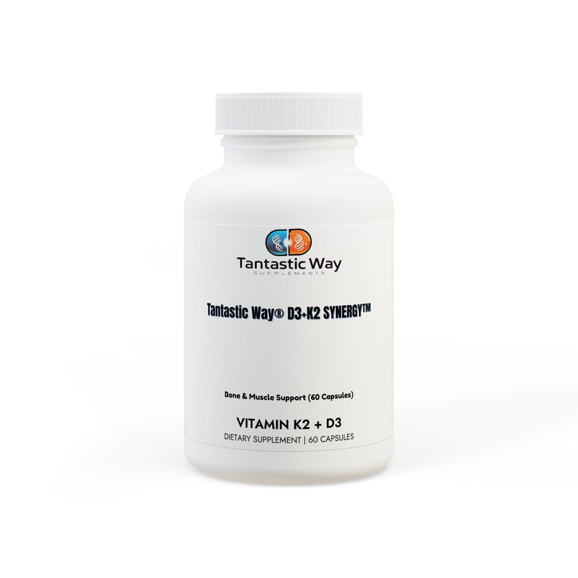 Unlock the powerful duo of Vitamin D3 + K2 with Tantastic Way® D3+K2 SYNERGY™—a clinically formulated supplement designed to enhance calcium absorption, support bone density, and optimize muscle function. Enhanced with BioPerine® for maximum bioavailability, this corn-free, lactose-free formula is ideal for athletes, active adults, and anyone seeking stronger bones and peak physical performance.